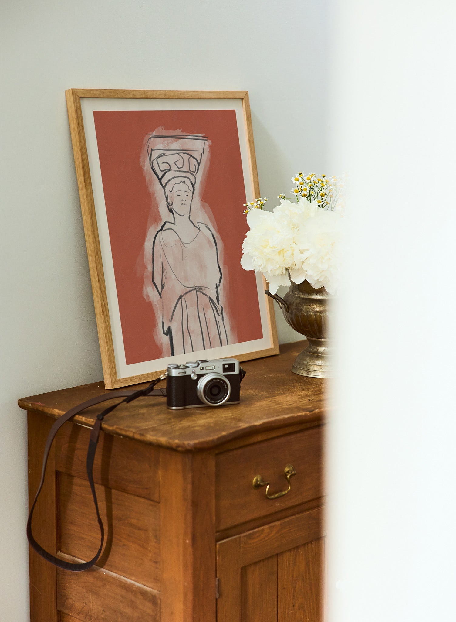 This sophisticated print is an ideal addition to a home office, library, or living room. It adds a touch of intellectual curiosity and artistic flair to any space. We love it styled with dark woods, leather accents, and curated collections of books and objects to create an atmosphere that is both worldly and personal.
