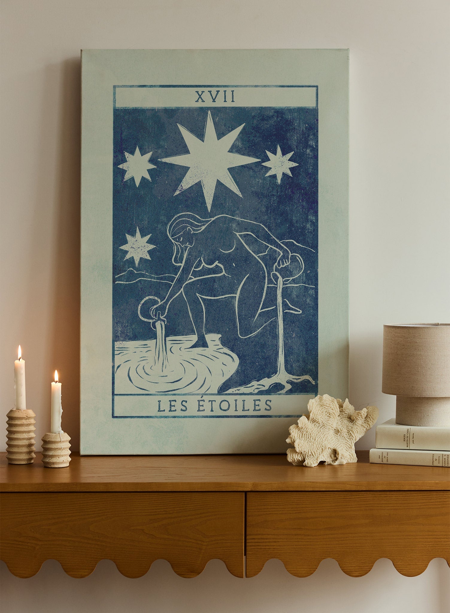 Perfect for a bedroom or a quiet study, this print inspires a feeling of calm and reflection. It creates a stunning visual statement when paired with the 'Le Soleil' print from the same series. We love it styled with soft textiles and natural materials to create a tranquil and restorative space.